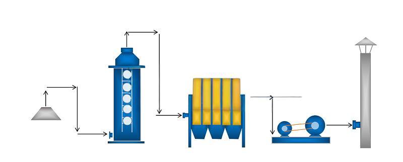 拟处理的锅炉废气考虑运营成本及安全性,本方案工艺路线拟采用以“通风系统(风机、收集罩、管道)+ 核心净化系统(双碱脱硫塔+湿式静电除尘器 )”为核心工艺来处理该废气。
