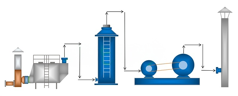 拟处理的电镀废气考虑运营成本及安全性,本方案工艺路线拟采用以“络合物以及重金属净化床+酸雾吸收塔 ”为核心工艺来处理该废气,工艺设备图如下: